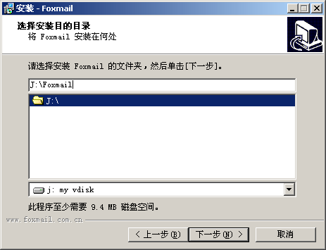 如下图,Foxmail 已经安装到我的虚拟硬盘 (J:)中了